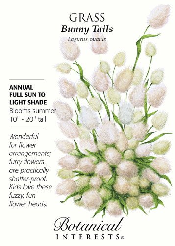Grass Bunny Tails Annual. Blooms in summer. 12-20" tall. Full sun or light shade. Bunny Tails Grass forms an upright fountain of charming soft and fluffy flower heads as soft as an actual bunny tail! Fun for kids, wonderful for flower arrangements. Adds a touch of whimsy and texture to the garden. Dried foliage is attractive in winter. Winner of the Quality Mark Award from Fleuroselect in 1993.
